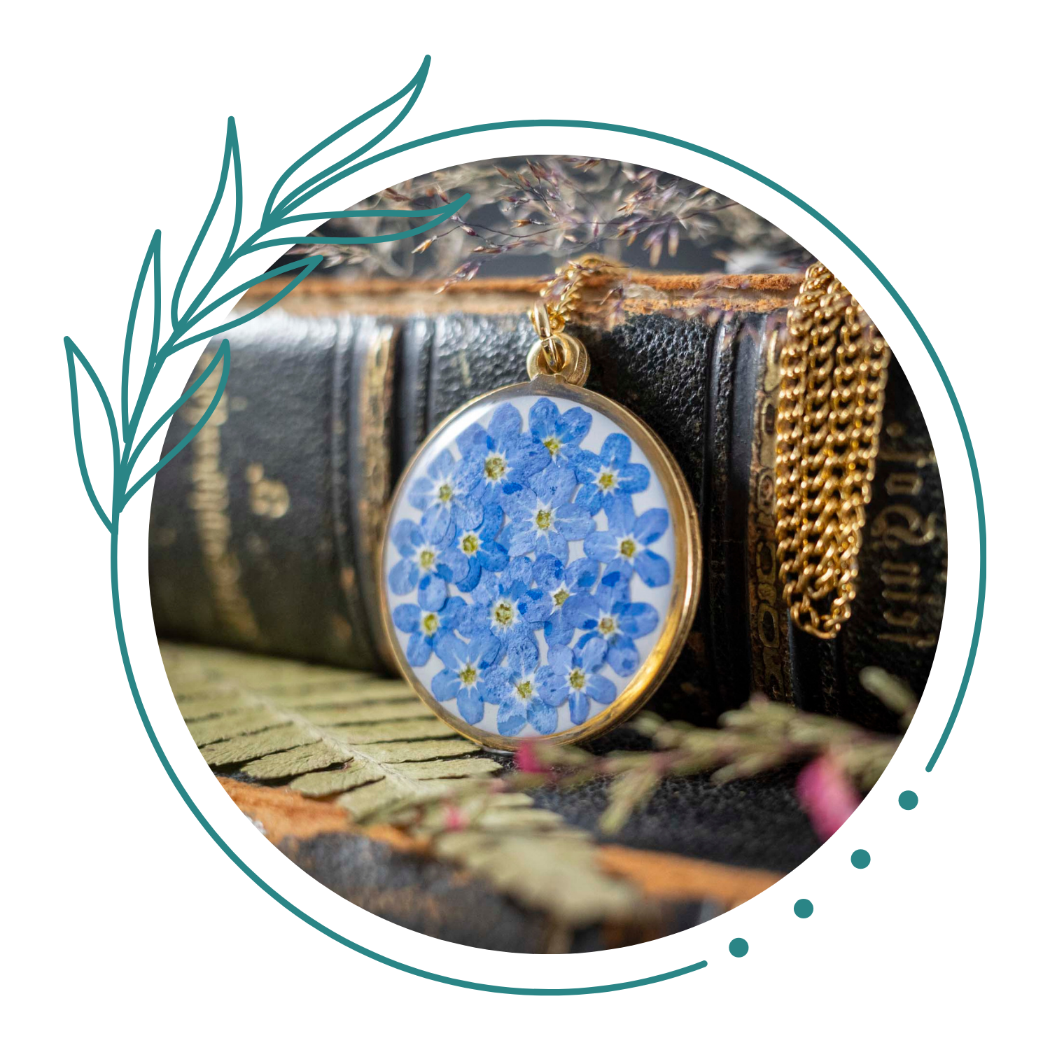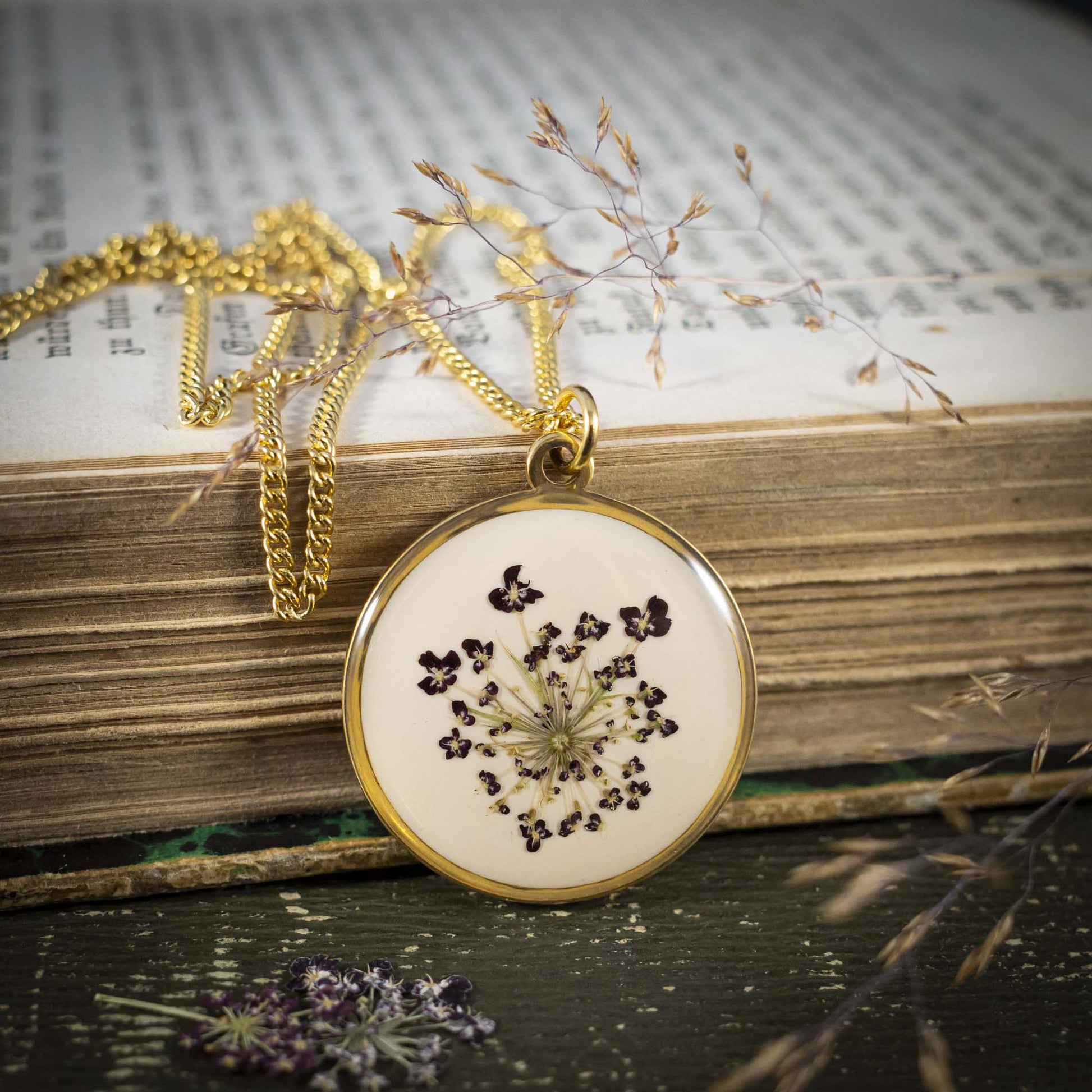 Jedes Schmuckstück entsteht in liebevoller Handarbeit. Ich sammle echte Pflanzen, trockne sie behutsam und gieße sie anschließend in glasklares Harz. So entsteht ein Stück Natur, das du immer bei dir tragen kannst.