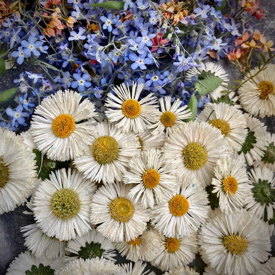 Getrocknete Vergissmeinnicht und Gänseblümchen