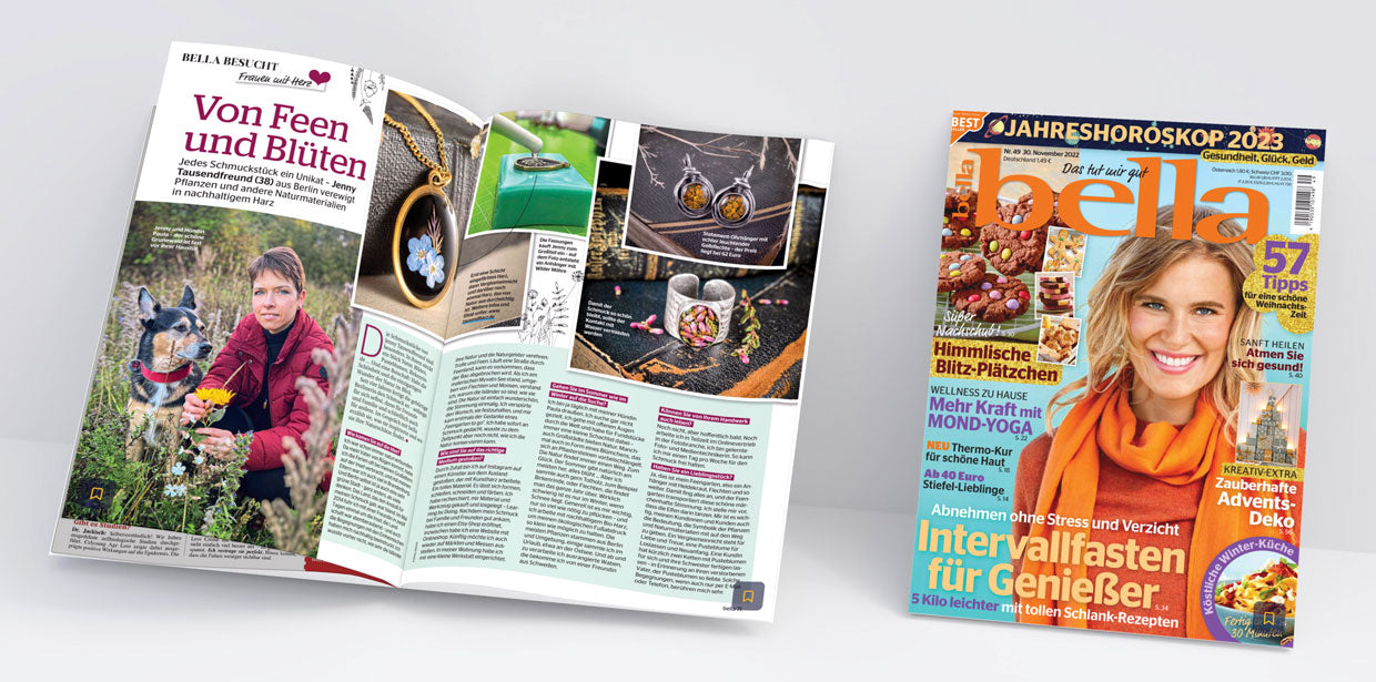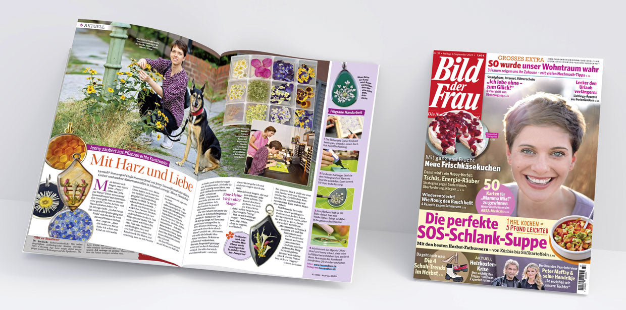 Ein Doppelseiten-Beitrag über mich und meine Arbeit. Darüber, wie ich dazu kam Schmuck zu machen und wie ich meine Materialien finde.