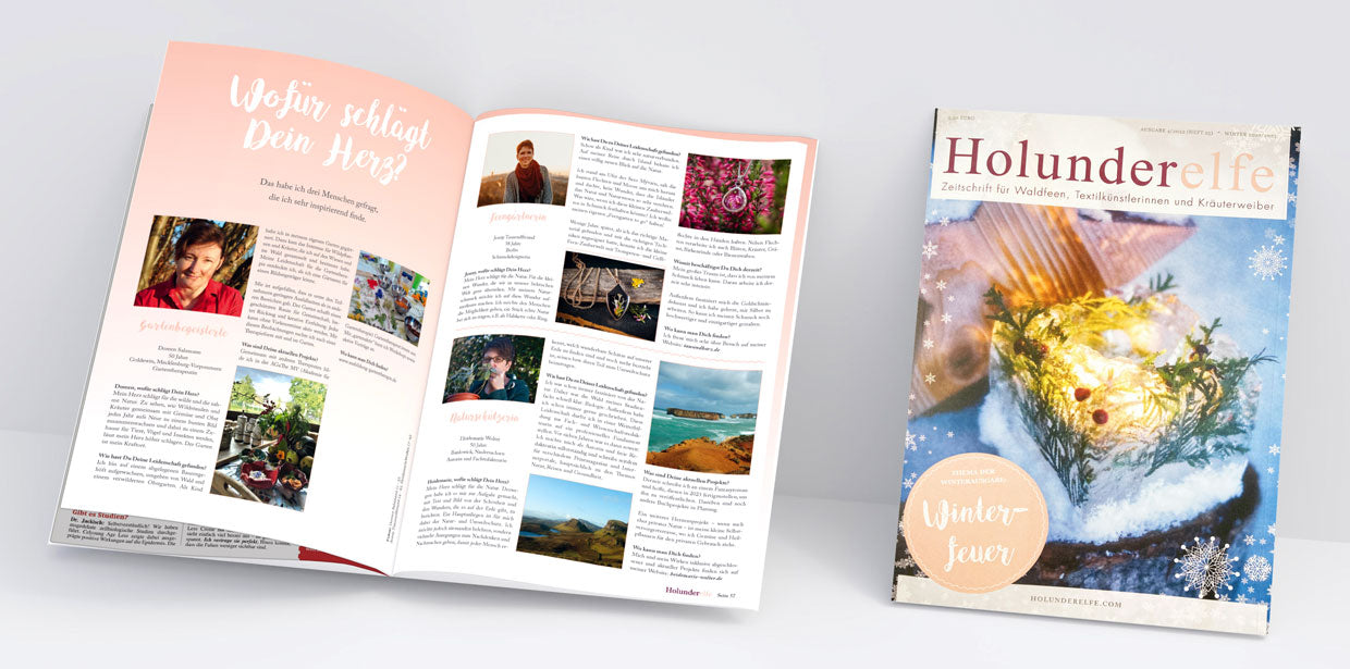 Die Holunderelfe ist die Zeitschrift für Waldfeen, Textilkünstlerinnen und Kräuterweiber.