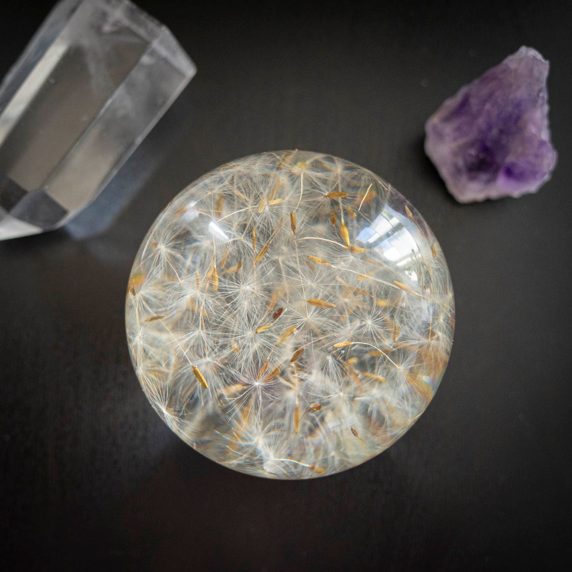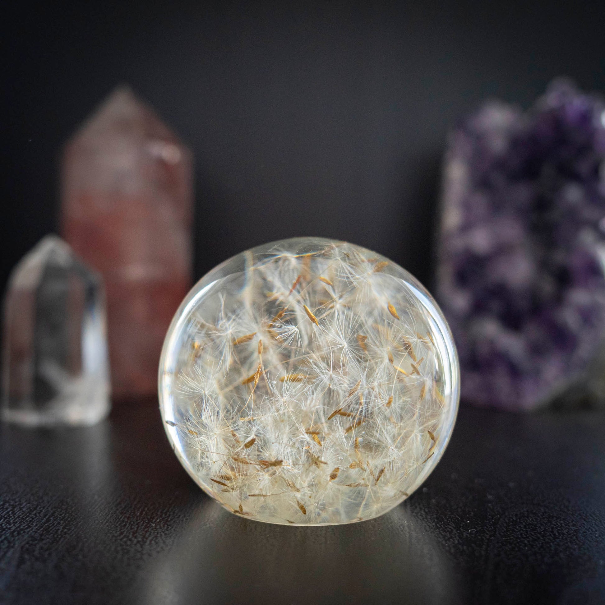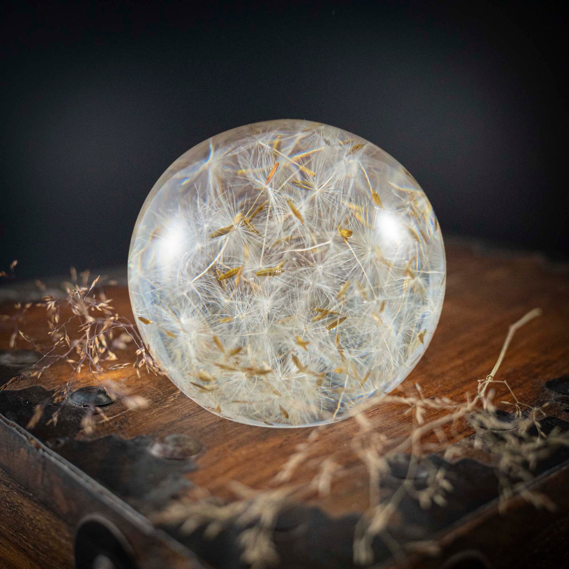 Pusteblumen-Kugel aus Harz – ein Hauch von Wunsch