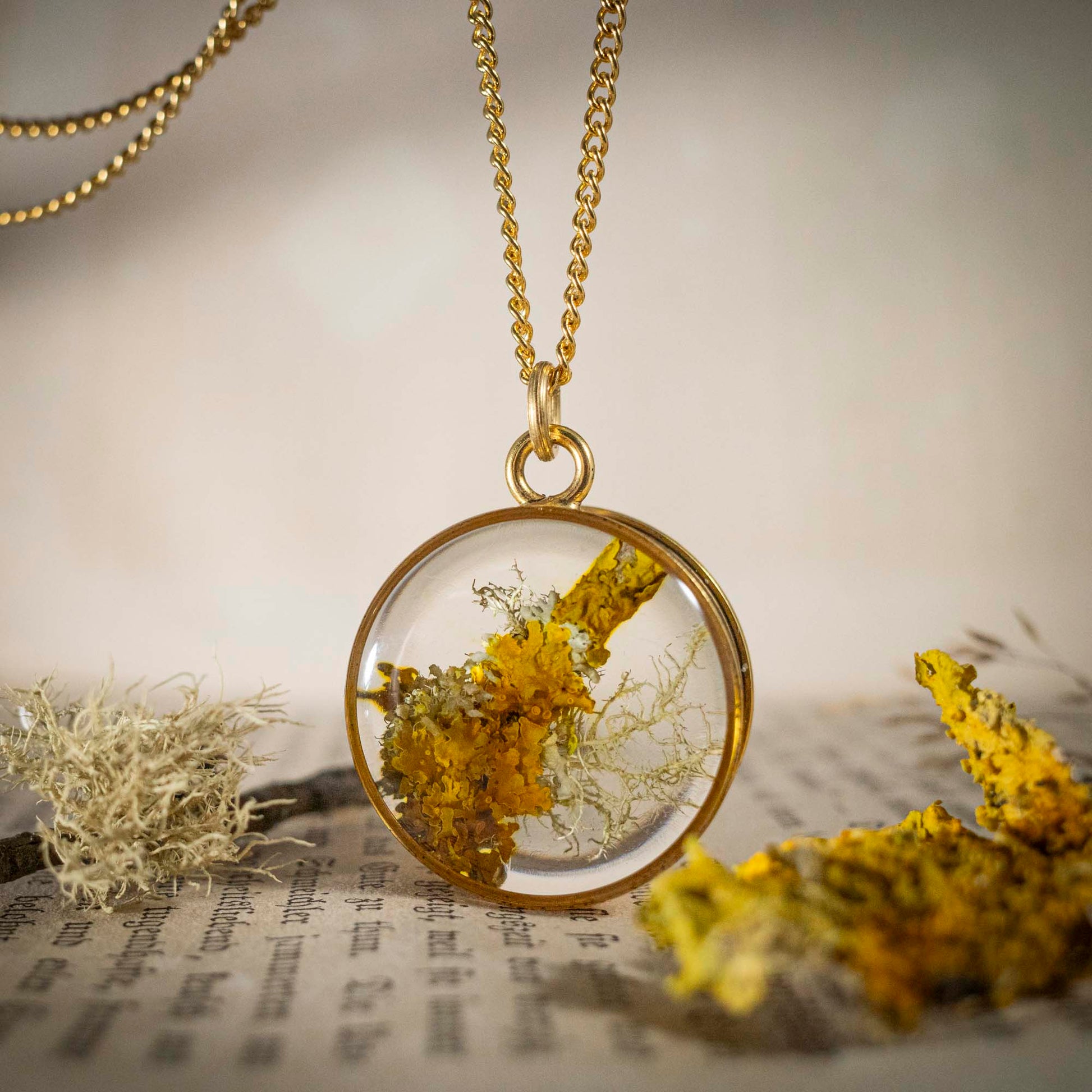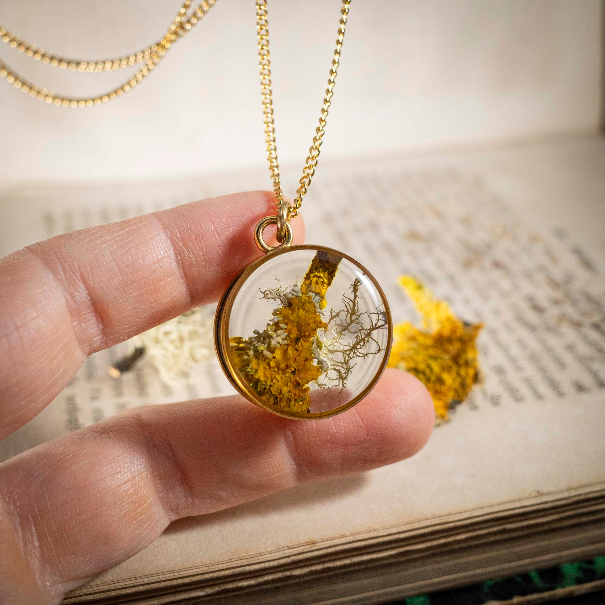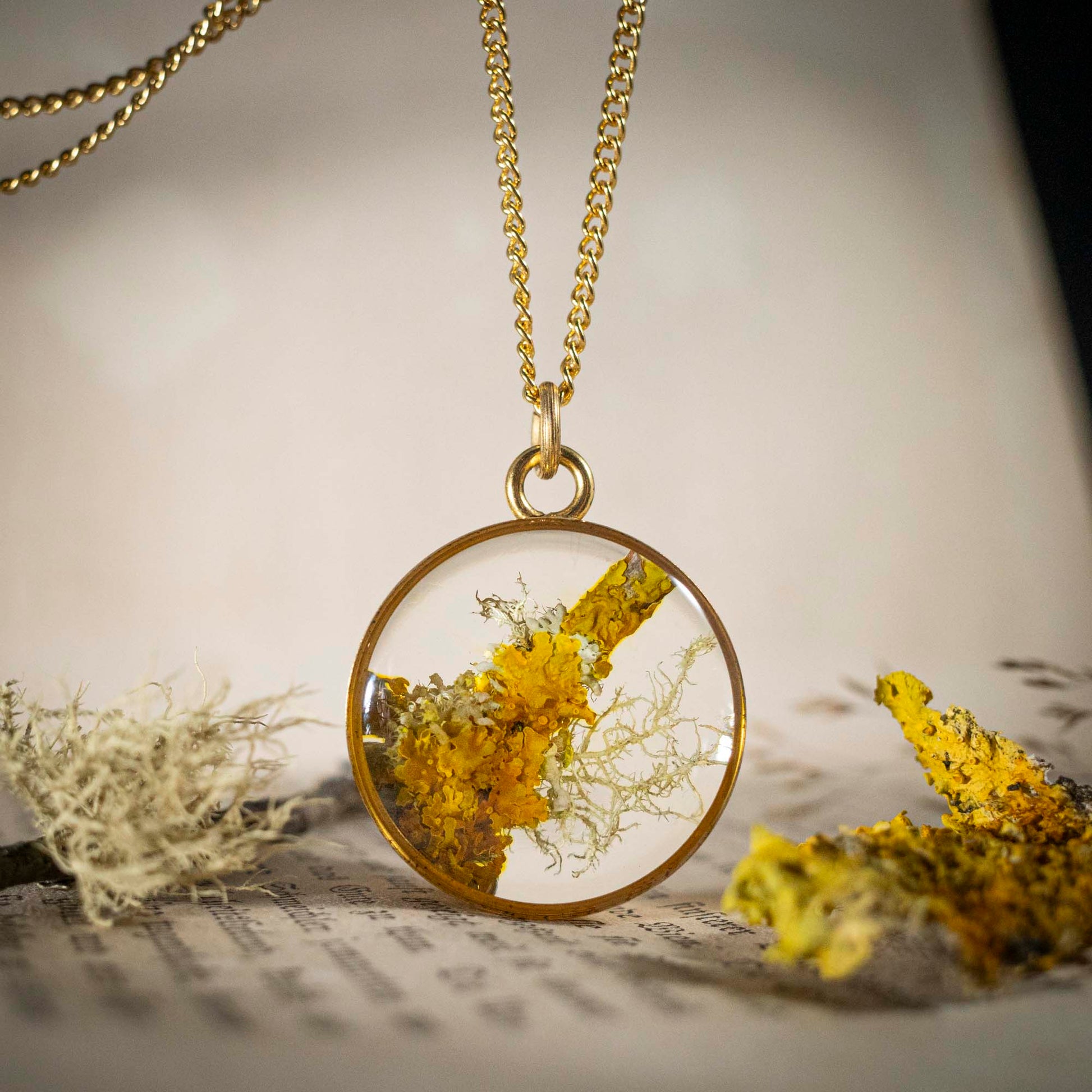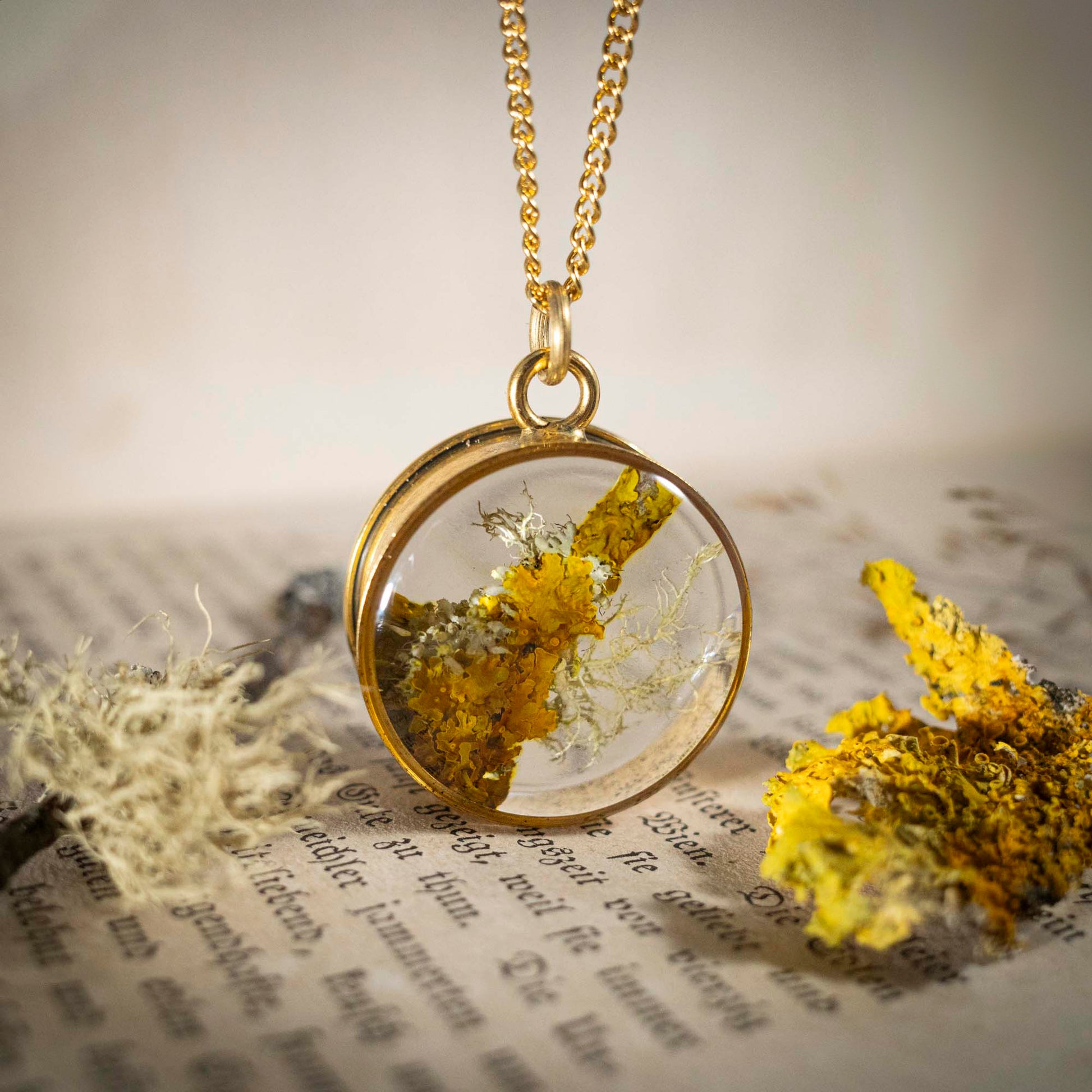 Schätze des Waldes - Anhänger mit Flechte, rund 24k vergoldet, #2
