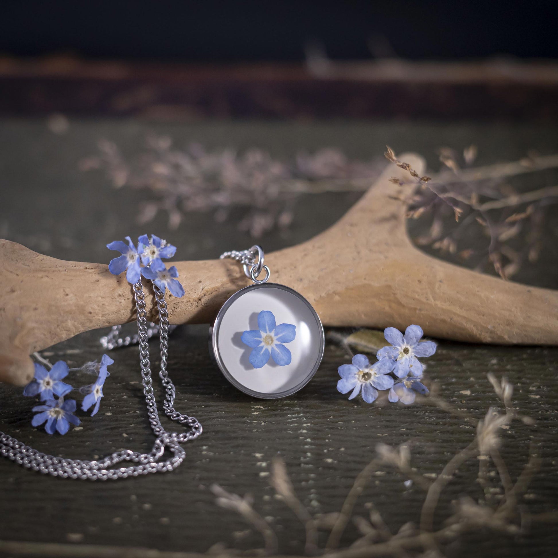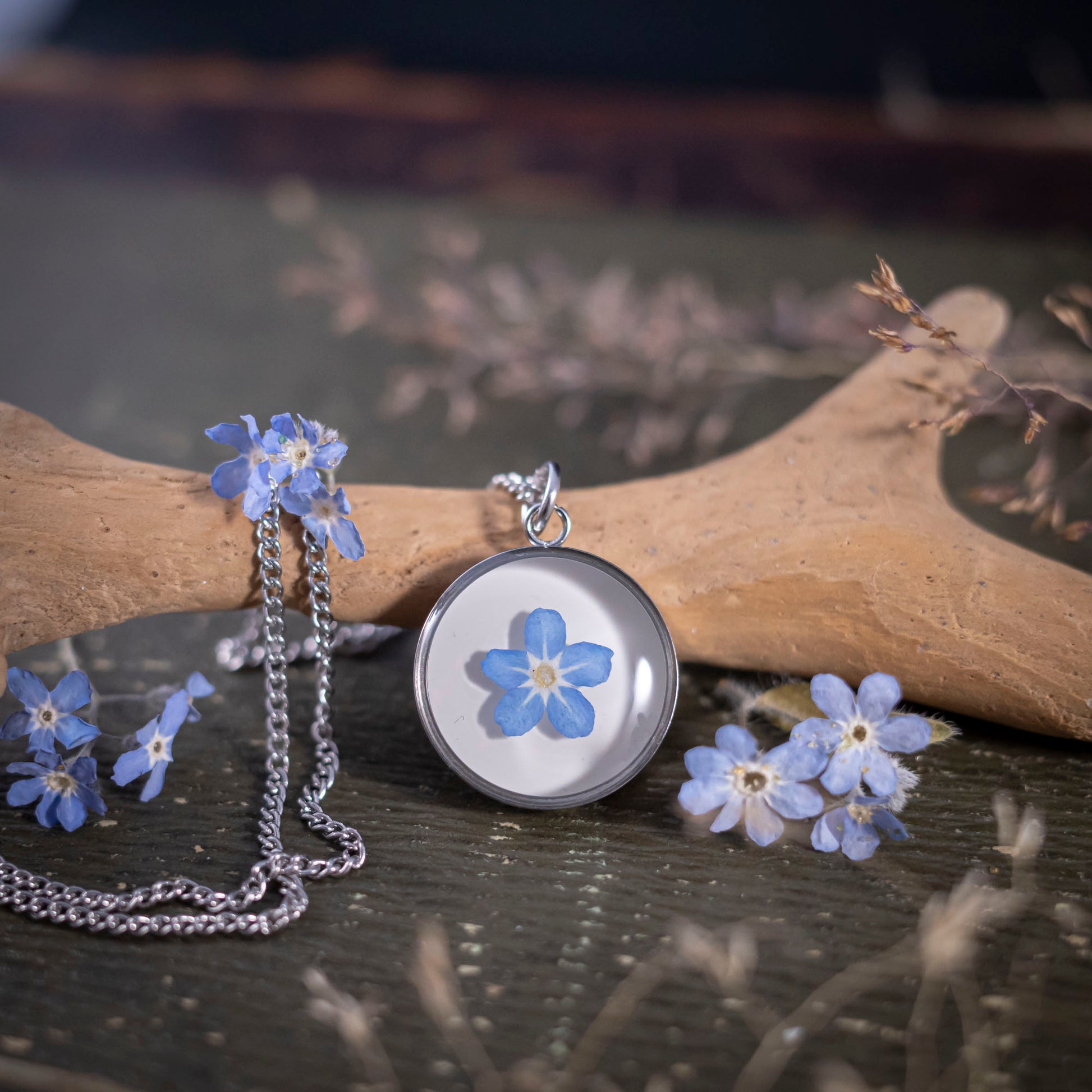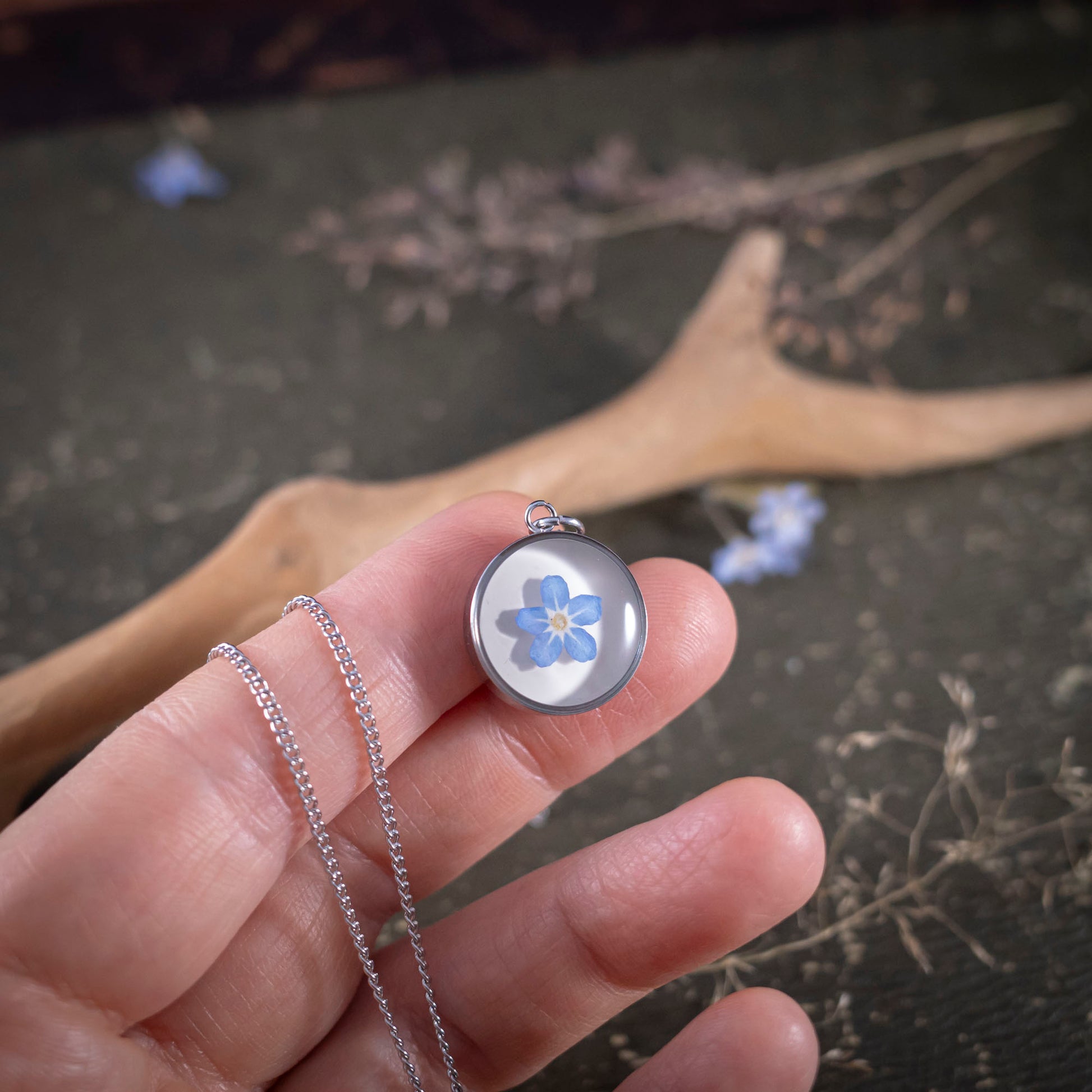 Du suchst ein besonderes Schmuckstück, das Gefühle ausdrückt? Dieser handgefertigte Edelstahlanhänger mit einer echten Vergissmeinnicht-Blüte in schützendem Epoxidharz steht für Liebe, Treue und unvergessliche Momente.