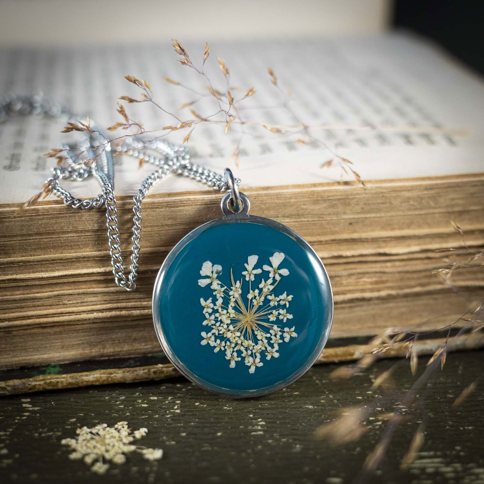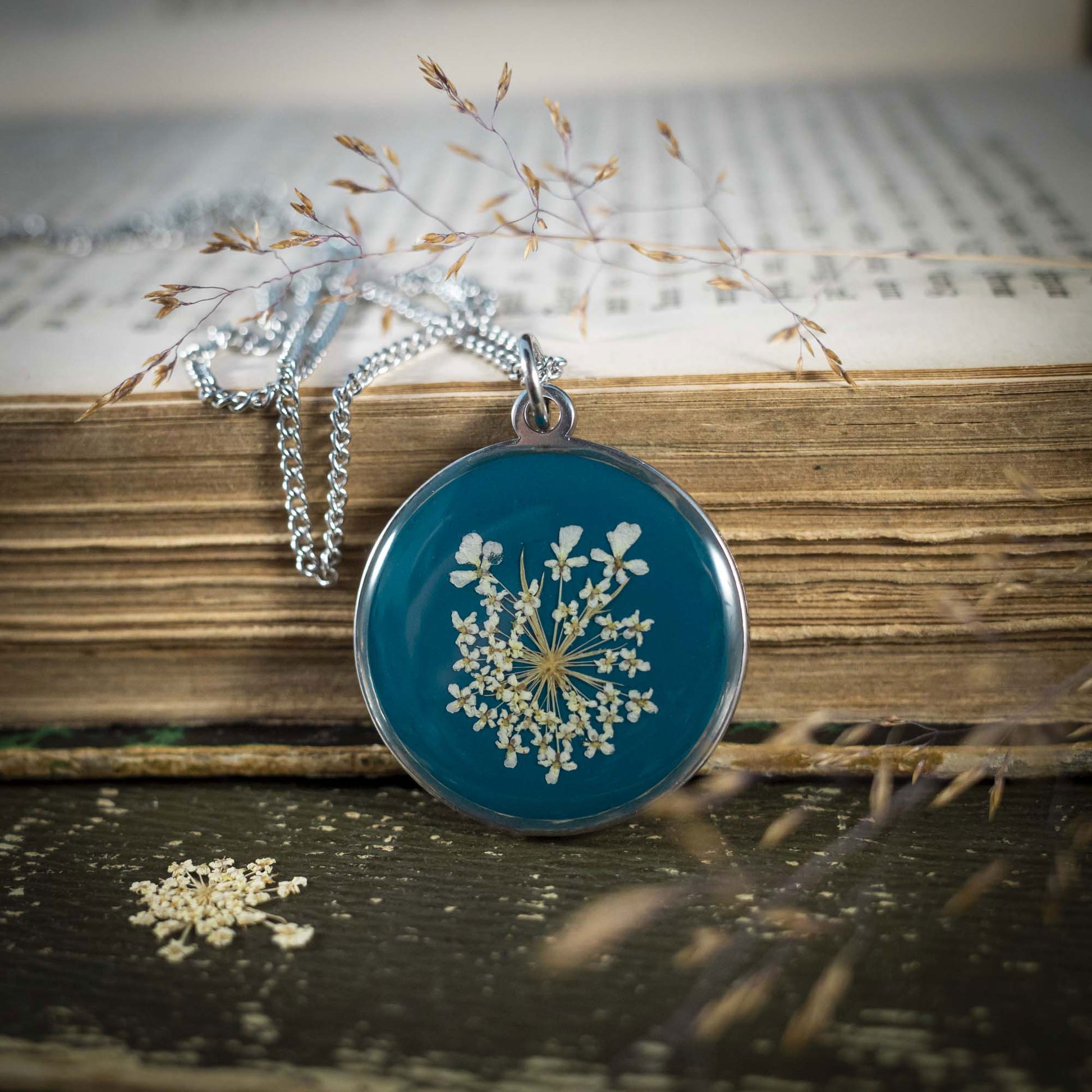 Du liebst Schmuck mit Bedeutung? Dieser handgefertigte Anhänger aus Edelstahl mit einer echten Blüte der Wilden Möhre in klarem Epoxidharz steht für Natürlichkeit, Schutz und innere Stärke. Die Wilde Möhre symbolisiert Wachstum und Lebenskraft – ein besonderes Zeichen der Verbundenheit mit der Natur.